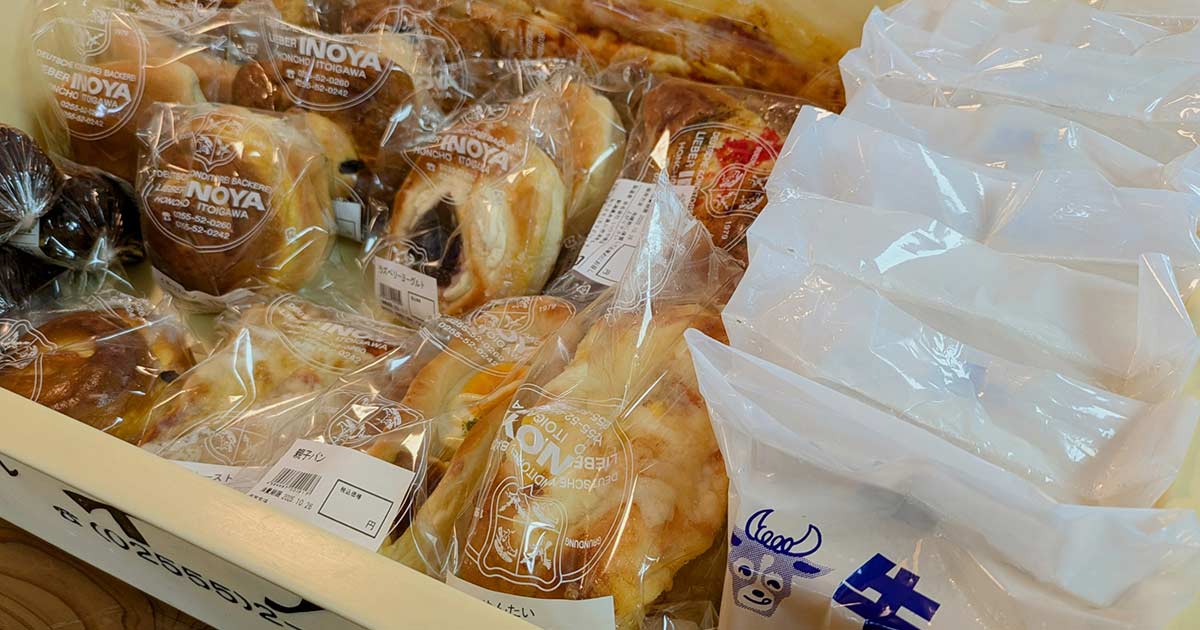 待っている間、本町通り商店街にあるリーベルイノヤ様のパンの中から、好きなものを選んでもらい昼食です。