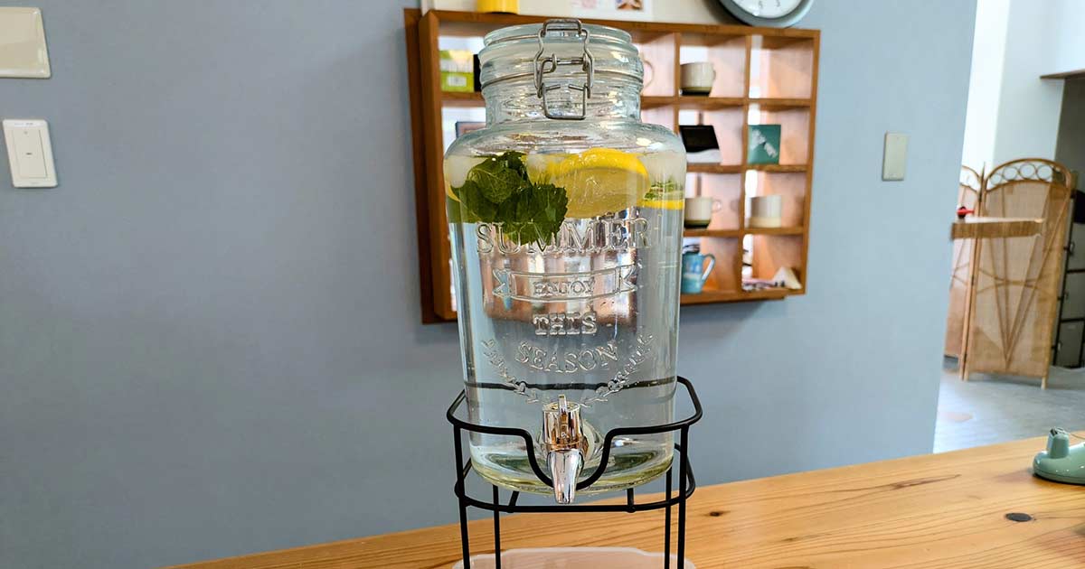また、レモンの輪切りとフレッシュミントを入れたウォーターサーバーもご用意。