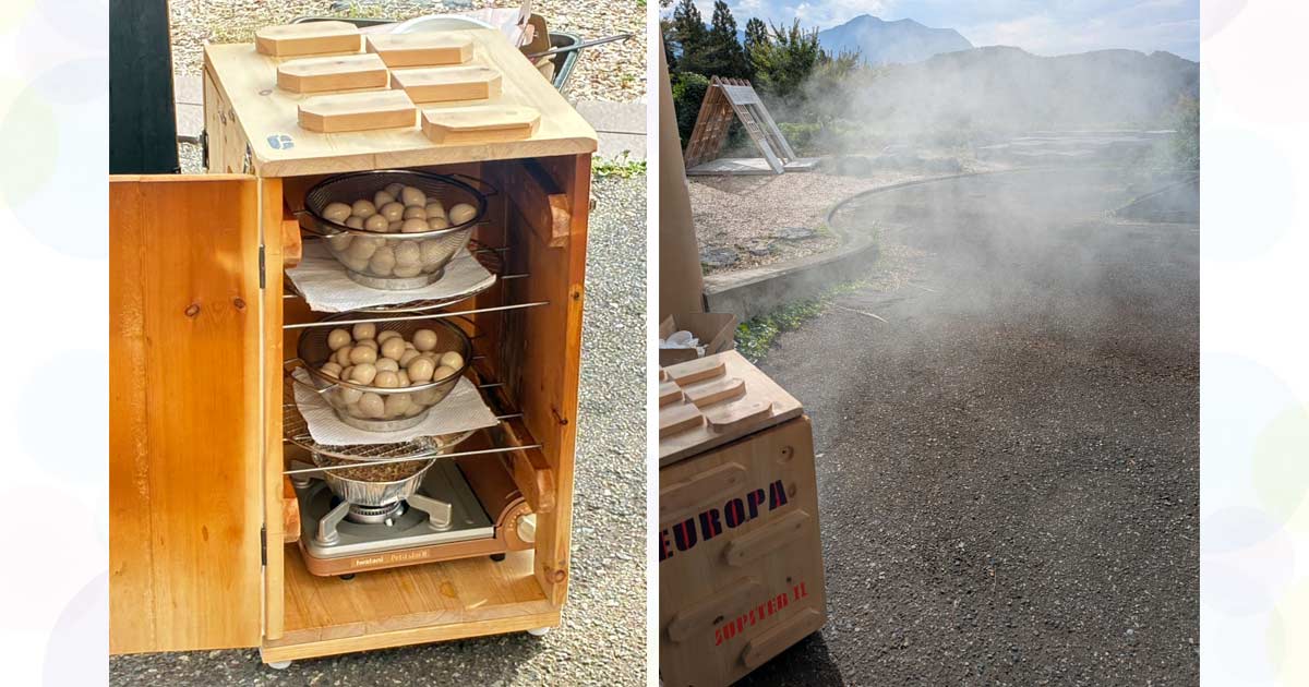 ここで、燻製名人が、自作の燻製ボックス『ジュピターⅡ号』と、この日のために新しく作製したという『燻製紙箱』を持って助っ人で登場。
