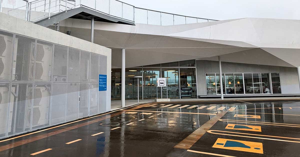 図書館、郷土博物館、珈琲ショップ、屋内遊戯室、広場がある複合施設です。