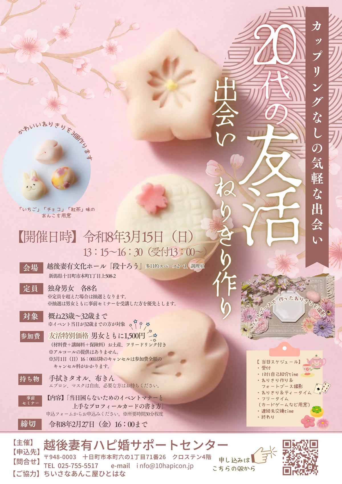 婚活イベント【20代の友活「出会い」ねりきり作り ~カップリングなしの気軽な出会い~】