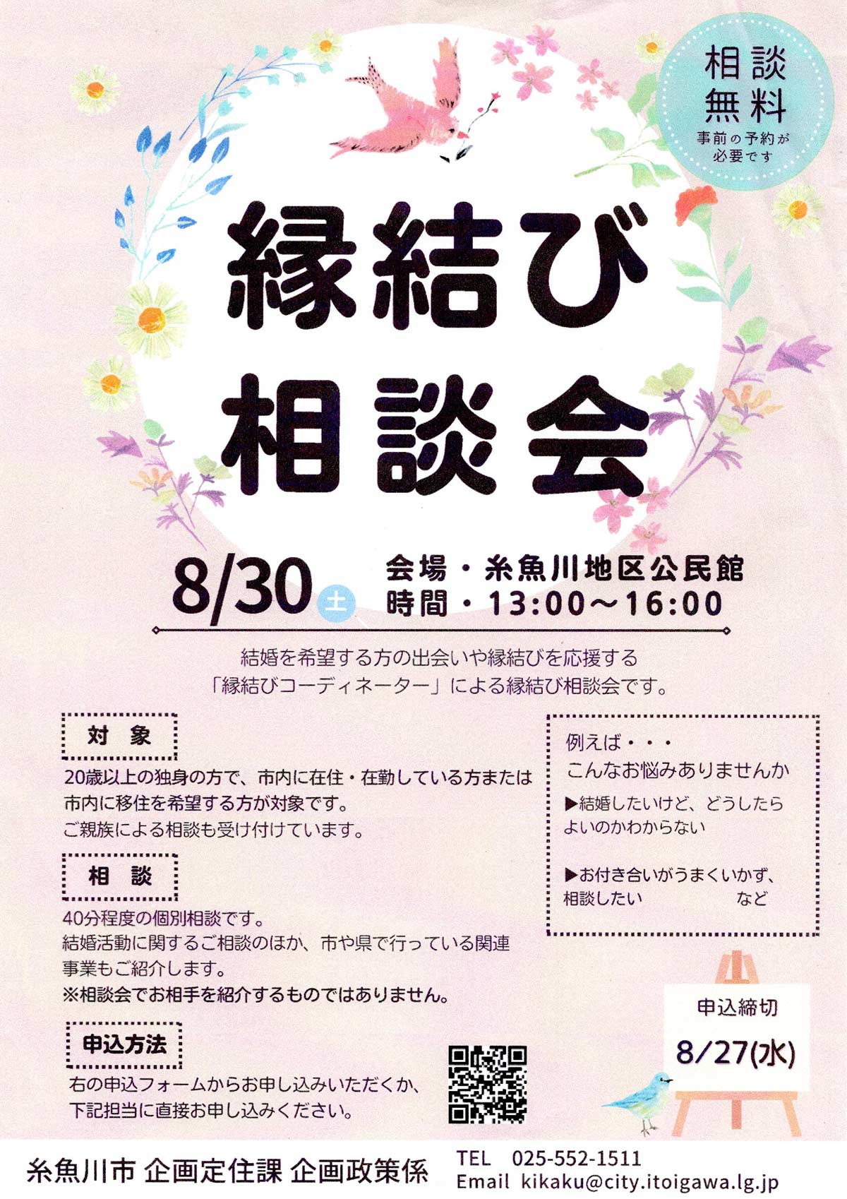 糸魚川市企画定住課企画政策係様主催の縁結び相談会です